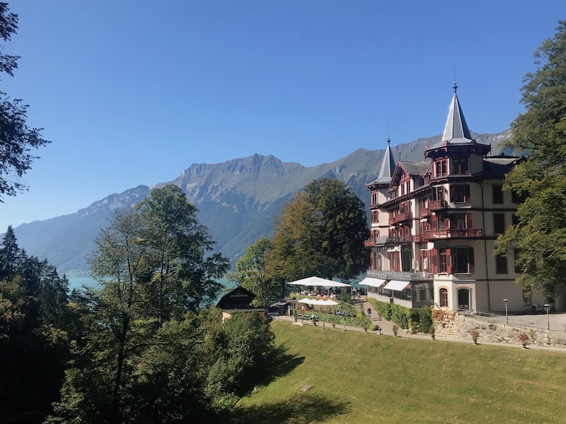 Mit dem Zug geht die Fahrt via Zürich, Luzern über den Brünig nach Brienz, wo uns das Nostalgieschiff Jungfrau bei herrlichem Bilderbuchwetter über den Brienzersee zur Anlegestelle Giessbach fährt. Hansueli Jakob, der aufgestellte Bahnbegleiter, bringt uns mit der Standseilbahn zu unserem Tagesziel, dem historischen Grandhotel Giessbach, hinauf. Ein edles Haus, das auch eine Übernachtung wert wäre, allein der Eingangsbereich ein Traum!