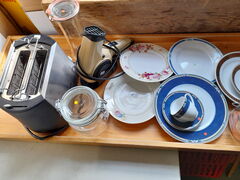 Essgeschirr, Elektrogeräte und Einmachgläser bieten wir im Monat Juni zum halben Preis an.
