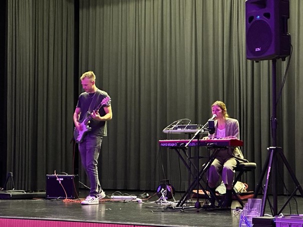 Für musikalische Unterhaltung sorgten zwei Bandmitglieder der Gruppe „Central 8“. Moritz beindruckte an der elektrischen Gitarre und Livia mit ihrer gewaltigen Stimme das Publikum.