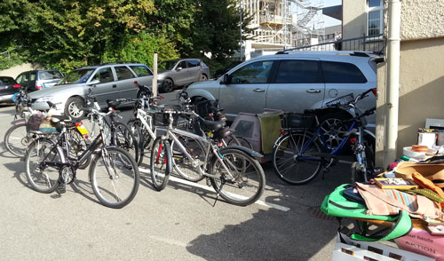Es war spannend zu sehen, dass die Kunden mit Velos, Inline skates, Rollern und natürlich zu Fuss unterwegs waren. So voll war der Brocki-Parkplatz schon lange nicht mehr.