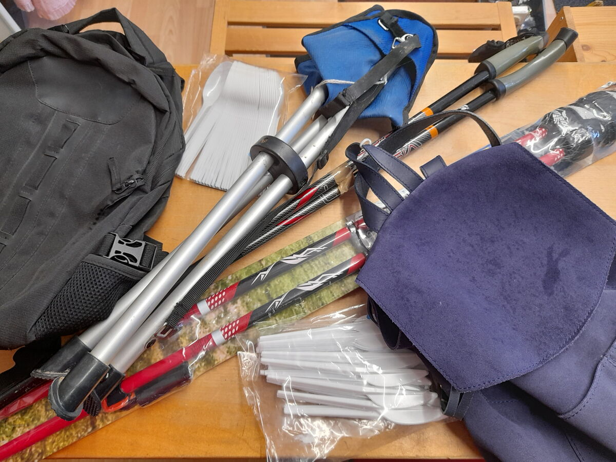 Rucksäcke, Campingsachen und Wanderstöcke