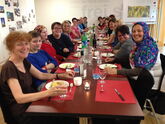 Kompliment an die Köchinnen! Einmal, zweimal... dreimal... haben wir unsere Teller gefüllt und nachgefüllt! Der Appetit war da. Die Stimmung auch! Obwohl viele der ausländischen Frauen schon mehrere Jahren in der Schweiz leben und mehr oder weniger ziemlich gut mit der Schweizer Küche zurechtkommen, ist es doch etwas Spezielles, diese Gerichte von eingeborenen Schweizern zu probieren.