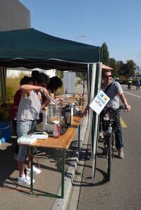 Schon zum achten Mal findet man auch einen Stand des Frauenvereins am slowUp. Strahlendes, aber nicht zu heisses Wetter lockte viele Leute, die aufs Auto verzichten wollten, auf die Seestrasse. So waren wir vor 17.00 Uhr mit Kuchen und Hot Dog ausverkauft. Nur bei den Fischete-Päckli hatte es noch Nachschub.