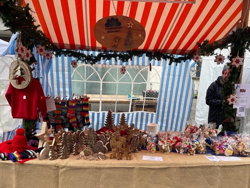 Leider hat das Wetter am diesjährigen Christchindlimärt am 9. Dezember 2023 nicht mitgespielt. Bereits ab dem frühen Nachmittag begann es zu regnen und der Wind frischte merklich auf. Trotzdem fanden, wenn auch nicht ganz so viele Besucher den Weg an die Kugelgasse und an unseren, wie immer schön präsentierenden Stand. Unsere fleissigen Helferinnen vor und hinter dem Verkaufsstand hatten dennoch immer etwas zu tun und liessen sich die gute Laune durch das garstige Wetter nicht verderben.