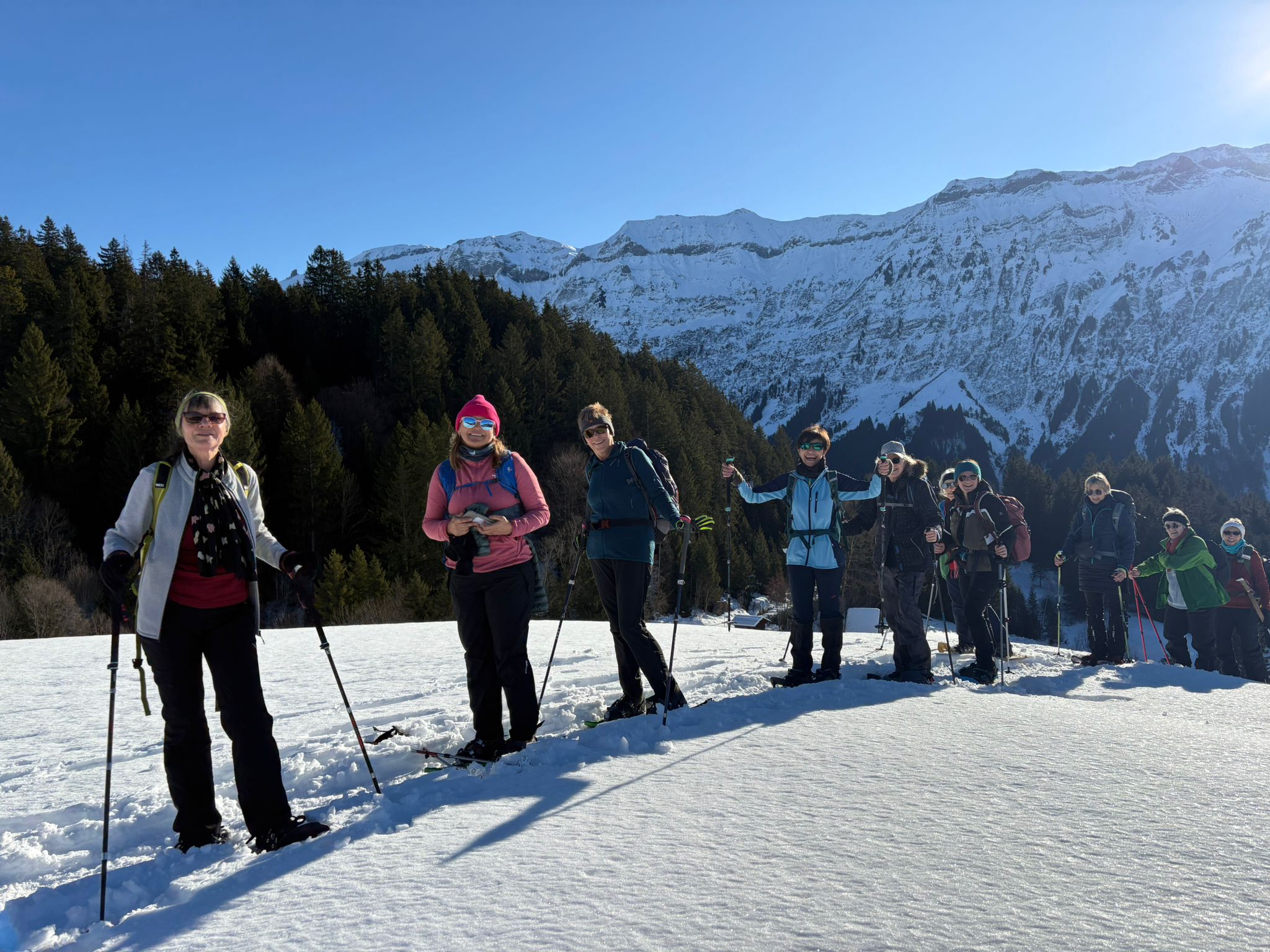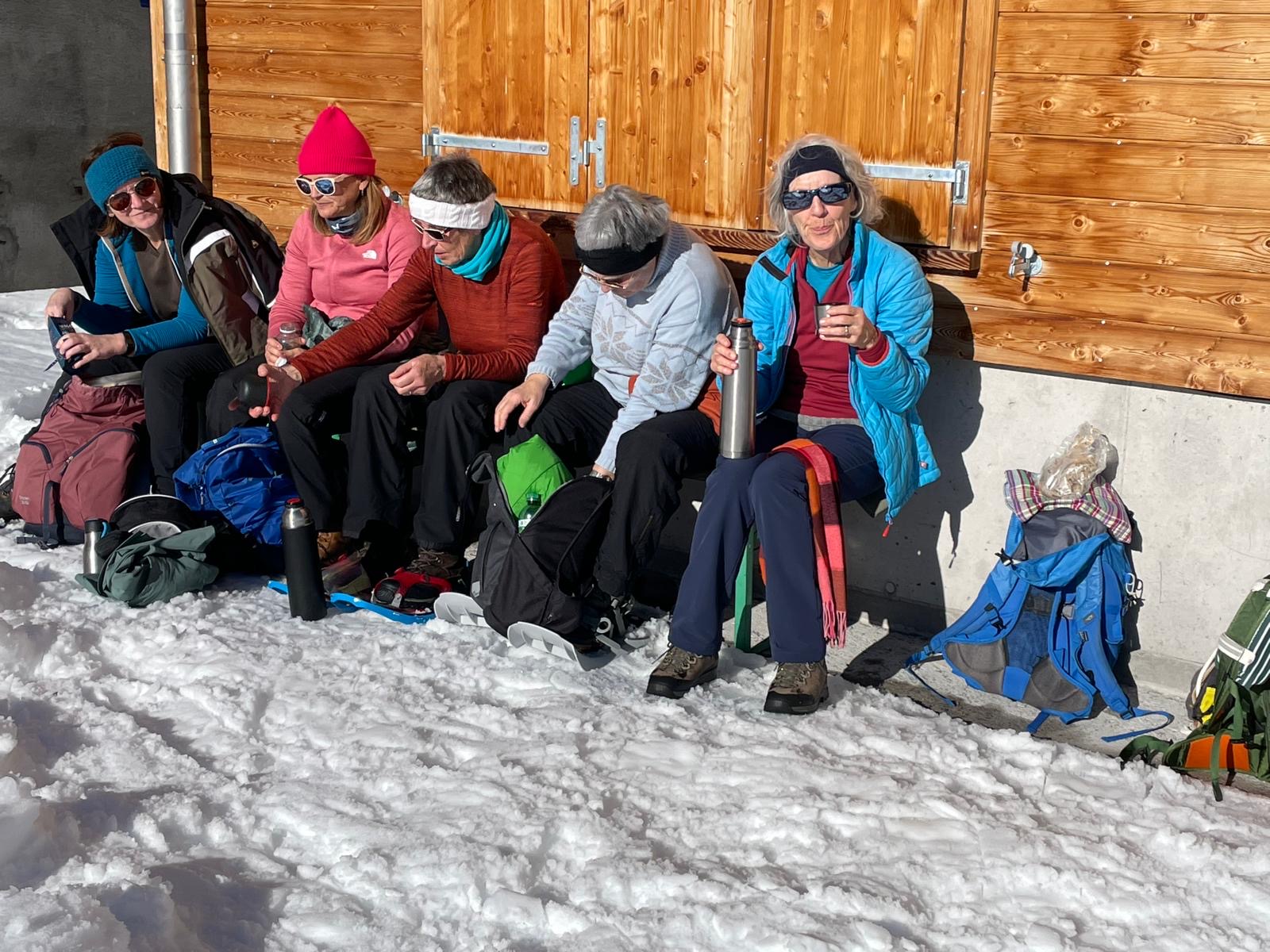 Wir waren am Schluss dankbar, dass kein Fehltritt passiert ist, ausser dass zwei von uns ein wenig Pech hatten. Bei einer von uns zerbröselten plötzlich ihre Stockteller und fielen ab, und eine andere setzte sich so unglücklich auf ihren Stock im Schnee, dass er zerbrach. Aber solches konnte die gute Laune nicht trüben.