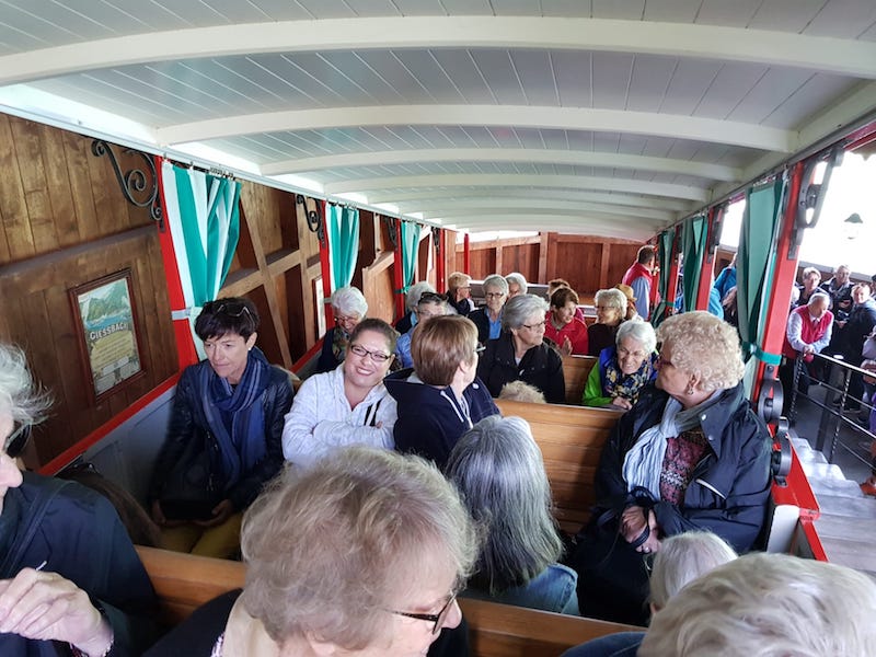 Um 08.10 Uhr versammeln sich 56 aufgestellte Frauen beim Bahnhof Männedorf, was von der Teilnehmeranzahl her rekordverdächtig ist! Die Reiseleiterin ist zufrieden, die Gruppe vollzählig. Es kann losgehen.