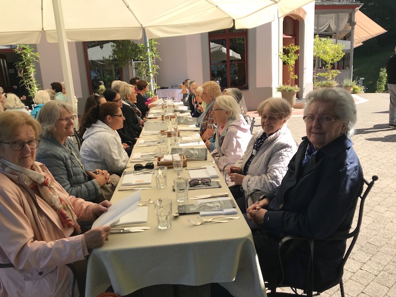Mit dem Zug geht die Fahrt via Zürich, Luzern über den Brünig nach Brienz, wo uns das Nostalgieschiff Jungfrau bei herrlichem Bilderbuchwetter über den Brienzersee zur Anlegestelle Giessbach fährt. Hansueli Jakob, der aufgestellte Bahnbegleiter, bringt uns mit der Standseilbahn zu unserem Tagesziel, dem historischen Grandhotel Giessbach, hinauf. Ein edles Haus, das auch eine Übernachtung wert wäre, allein der Eingangsbereich ein Traum! Die Tische sind bei dem schönen Wetter draussen auf der Terrasse für uns gedeckt, und wir lassen uns gerne vom aufmerksamen Personal mit einem leckeren Mittagessen verwöhnen. Es bleibt noch genügend Zeit für einen Spaziergang zu den beindruckenden Giessbachfällen oder im wunderschön angelegten Garten des Grandhotels, bevor es wieder talwärts geht.