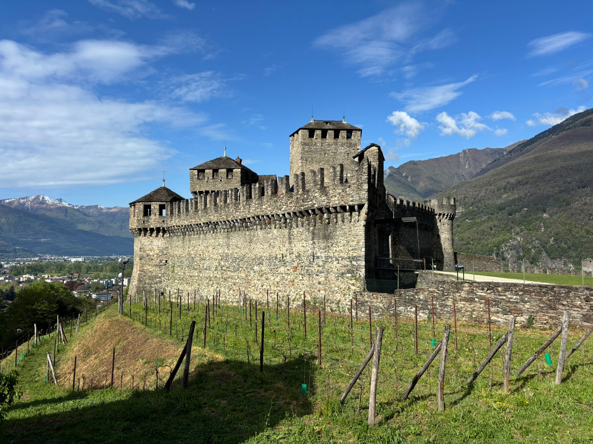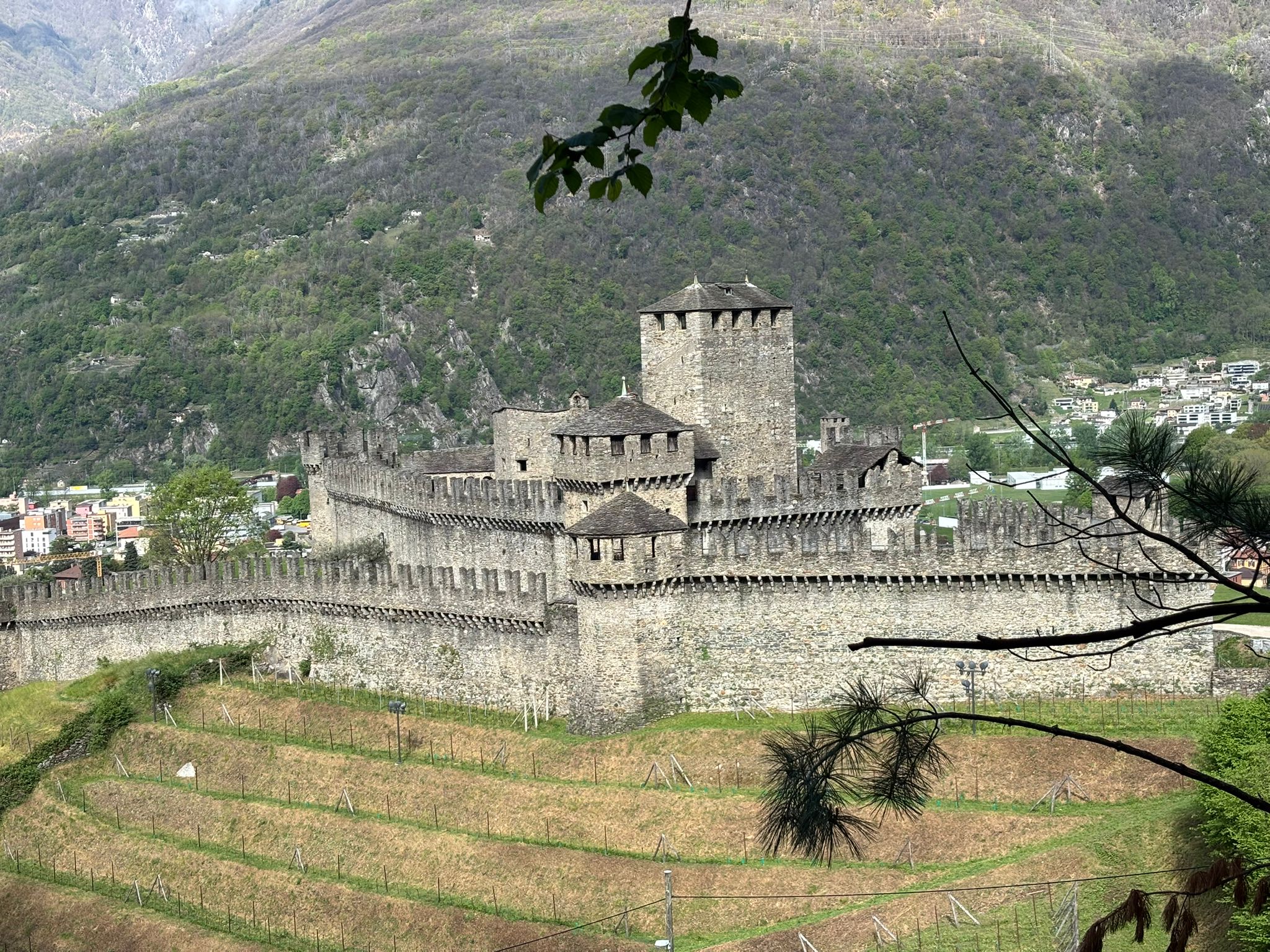 Zum Abschluss führte uns der Weg zurück Richtung Stadt zur dritten Burg, Castelgrande. Die imposante Anlage mit ihren weiten Innenhöfen und der offenen Lage bietet nochmals einen ganz anderen Blick auf Bellinzona und die andere 2 Burgen – ein würdiger Abschluss dieser abwechslungsreichen Wanderung.