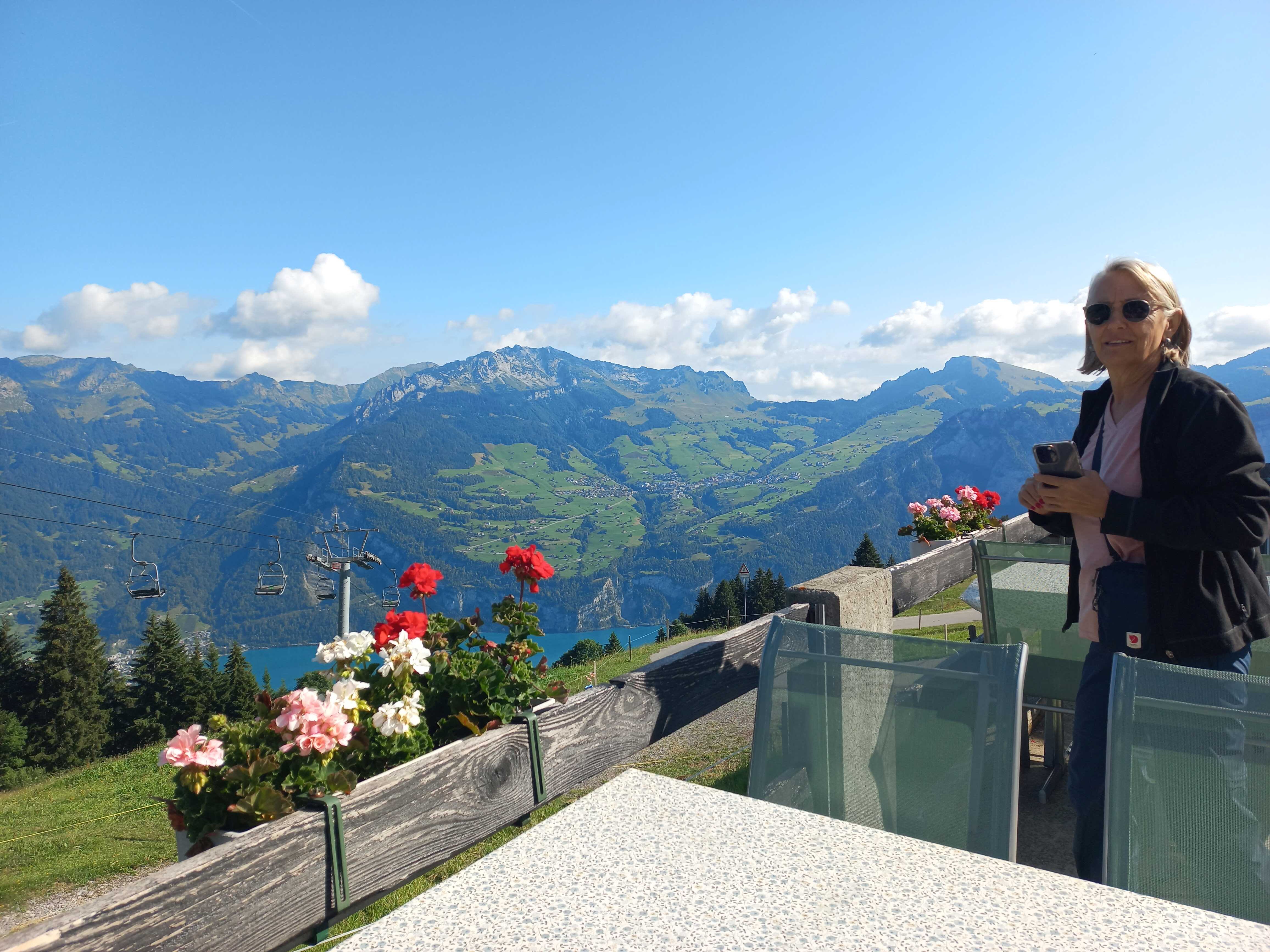 Mit Geniessen geht es gleich weiter; die Aussicht, das Wetter, später die Alpwirtschaft mit feinem Joghurt, Käse zum Kaufen. Die Bahn „ruft“ und weiter geht’s zur Sesselbahn auf den Heimweg.