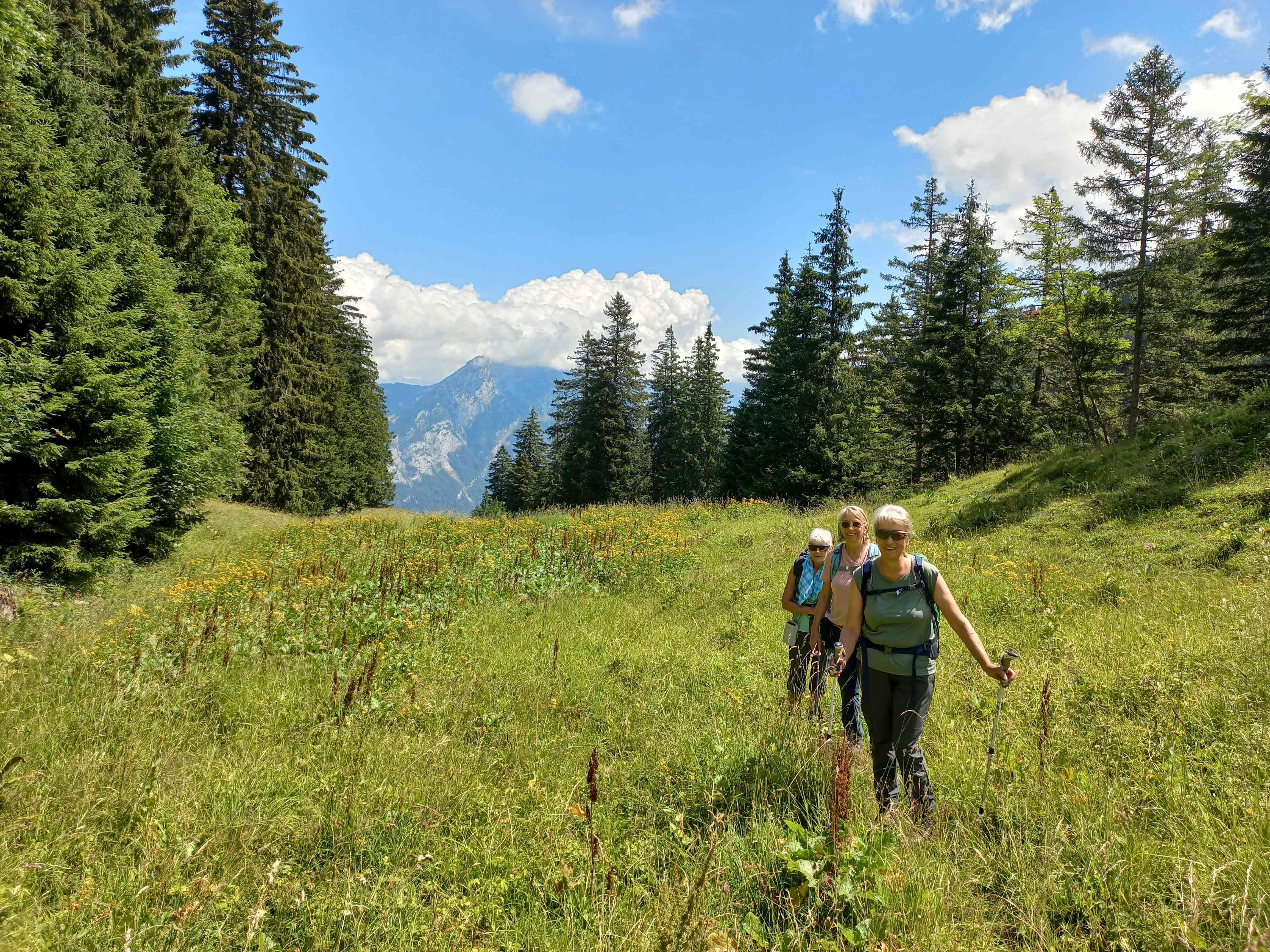Wir haben unsere Wanderroute kurzum geändert, so sind wir alle mit dem Sessellift in die Höhe zu Kaffee und Gipfel in der Habergschwänd geschwebt. Mit Rucksack auf dem Wanderweg zum und rund um den Talalpsee gewandert. Wieder zurück zur Habergschwänd und dann haben wir uns in zwei Gruppen aufgeteilt.