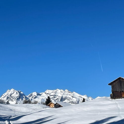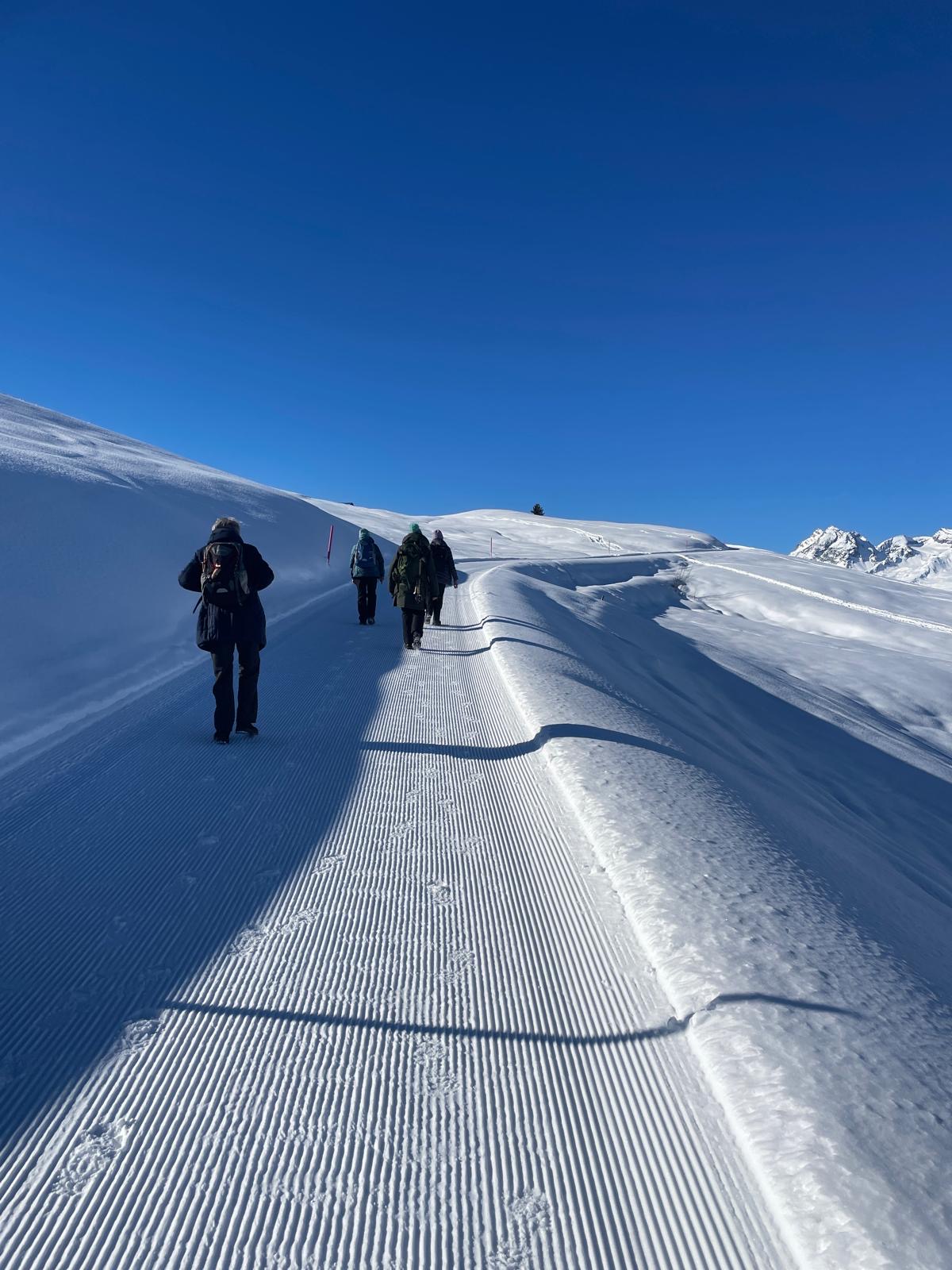 Erinnerungen an die wunderschöne Wanderung nach Surcuolm / Obersaxen vom Dienstag, 14. Januar 2025 unter der Leitung von Mirella Morf.