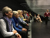 Nach dem leckeren Mahl in der TV-Kantine bringen uns Tram und Bus zum Schiffsbau. Hier warten wir erst einmal eine geraume Zeit bei windig kaltem Wetter, bis wir ins Haus von Aeschbacher eingelassen werden. Weiteres Warten bis zur Saalöffnung strapaziert etwas unsere Geduld. Ob es sich lohnen wird, sich hier eingequetscht zu gedulden?