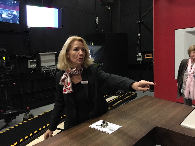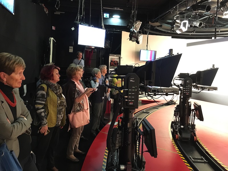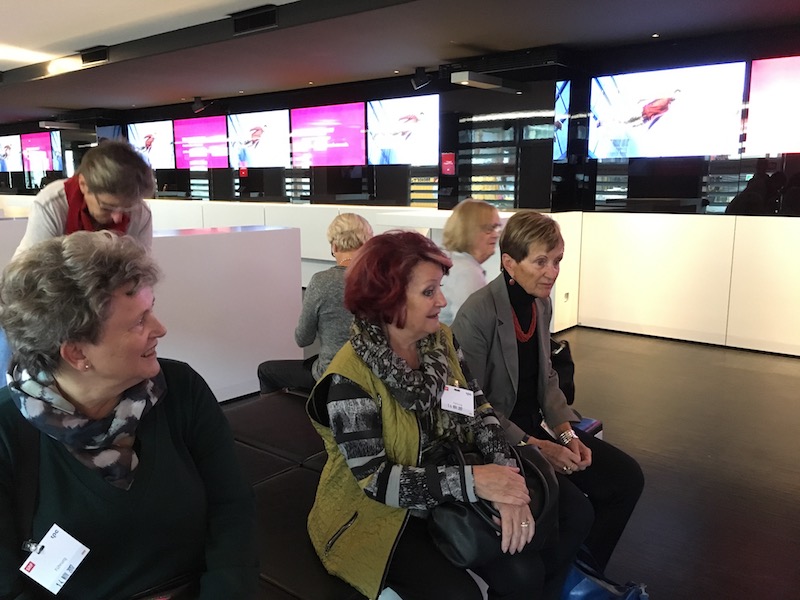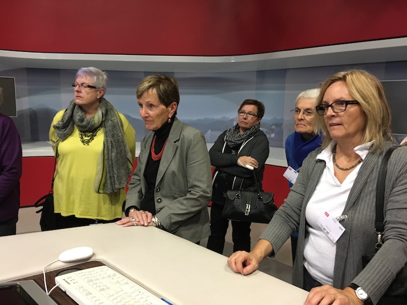Eine grosse Gruppe interessierter, gwundriger Frauen machte sich am Dienstagnachmittag auf ins Fernsehstudio Leutschenbach. Aufgeteilt in zwei Gruppen wurden wir kompetent durch die verschiedenen Studios geführt, hörten mit Erstaunen vom komplexen oft in Sekunden terminierten Ablauf einer Sendung. Für alle 42 Frauen war es eindrücklich, wie klein und eng die Studios sind, wie platzsparend gearbeitet werden muss und wie wenig, eigentlich gar kein, Spielraum besteht für Spontanietät. Alles scheint minutiös vorgegeben, sogar die Grösse der Moderatoren und Moderatorinnen ist auf Zentimeter genau festgehalten, damit das Bild auf unserem Fernsehschirm dann wirklich stimmt. Und über allem ein Meer von Leuchten und Scheinwerfern, wie der Sternenhimmel in einer klaren Sommernacht!