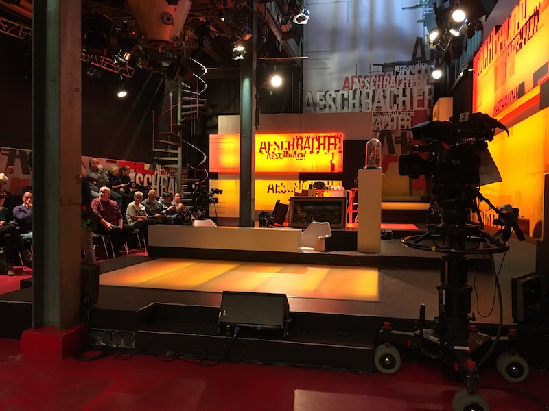 Das Studio von Kurt Aeschbacher ist ein krasser Gegensatz zum fast sterilen Outfit im Leutschenbach! Hier findet auch Spontanes Platz und live ist wirklich live, wenn auch aufgezeichnet für ein späteres Sendedatum. Kurt Aeschbacher versteht es ausgezeichnet, uns auf seine lockere und angenehme Art ein halbstündiges „warming up“ zu verpassen. Charmant führt er dann auch durch die 50-minütige Sendung mit seinen vier Gästen. Wir sind auf beste Art unterhalten und lachen auch herzlich und ungezwungen mit! Und ja: das Warten im engen Korridor hat sich gelohnt! Dem Frauenverein sei’s gedankt!
