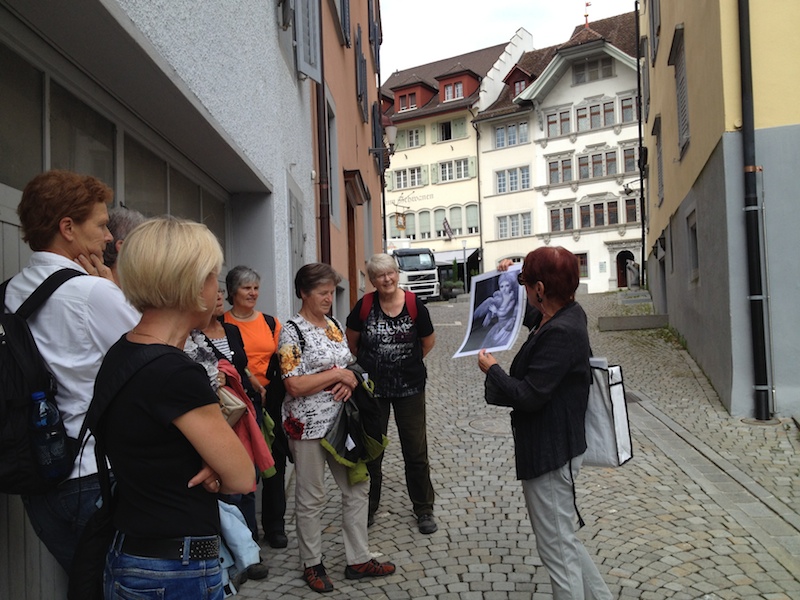 Spannende Geschichten von Frauen, welche im Mittelalter in Sursee lebten, wurden uns am Nachmittag während einer privaten Stadtführung von einer einheimischen Surseeerin erzählt. Obwohl der Regen am diesem Tag in der Luft hing, konnten glücklicherweise die mitgenommenen Schirme (scheinbar ein „Muss“ diesen Sommer) schön im Rucksack bleiben!