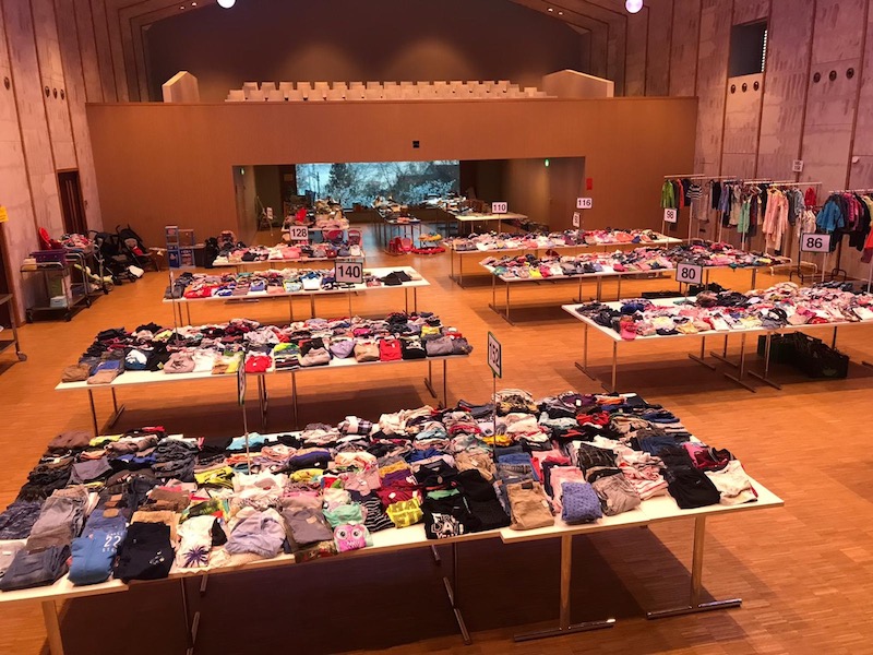 Am Samstagmorgen öffnete die Börse um 9 Uhr. Der Saal war schnell gefüllt mit Menschen, die laut plaudernd durch den Saal streiften in der Hoffnung auf schöne Kleider, Schuhen, Spielsachen und vieles mehr. Und sie wurden nicht enttäuscht. Auch Fussballfreunde kamen auf ihre Kosten. Fussballschuhe in Top Qualität wurden angeboten und fanden einen neuen Besitzer. Den Erlös dieser erfolgreichen Börse spendeten wir den beiden Organisationen «Sternschnuppe» und «Herzensbilder».