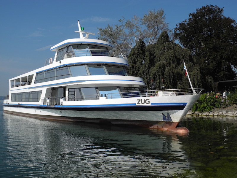 Nach einem kurzen Spaziergang entlang dem See gönnten sich die Frauen in einem gemütlichen Kaffee in der Altstadt einen feinen Cappuccino. Kurz nach 12.00 Uhr bestieg die muntere Schar das Schiff MS Zug zu einer dreistündigen Rundfahrt auf dem Zugersee. Das feine Mittagessen mundete noch besser vor der herrlichen Kulisse rund um den See. Über Cham, Buonas, Risch, Immensee, Arth Goldau, Walchwil und wieder zurück nach Zug führte die Reise. Ein Gruppenphoto am Hafen durfte natürlich nicht fehlen.